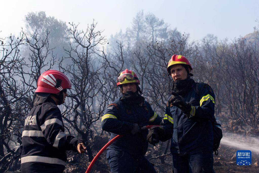 8月23日,消防員在希臘雅典西北的維利亞村進行滅火作業。