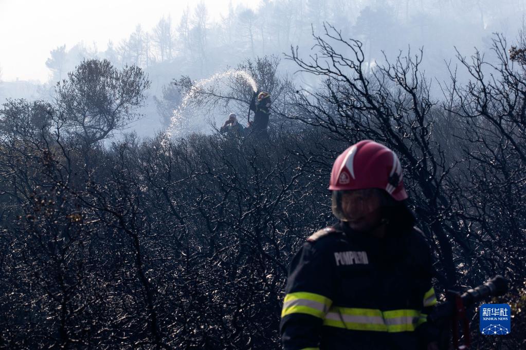 8月23日,消防員在希臘雅典西北的維利亞村進行滅火作業。