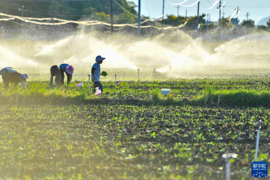 當日,天氣晴好,在湖南省永州市道縣清塘鎮濂溪大洞蔬菜基地,農戶搶抓農時在田間勞作。