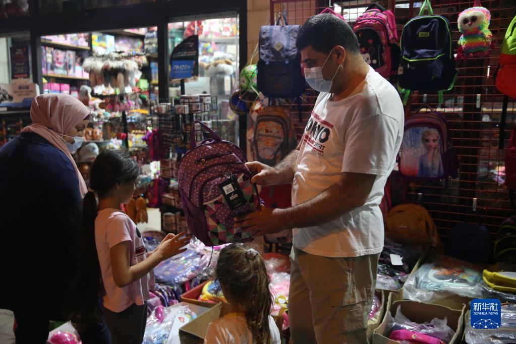 8月30日,在耶路撒冷,家長在開學前帶孩子選購文具。