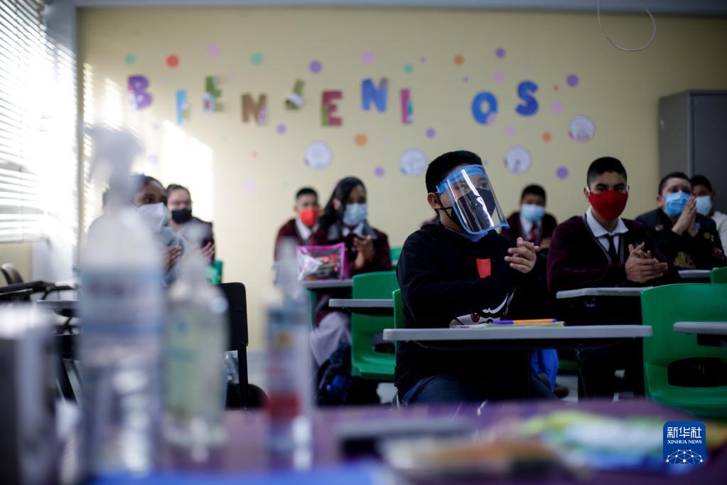 8月30日,在墨西哥特拉爾內潘特拉,學生佩戴口罩上課。