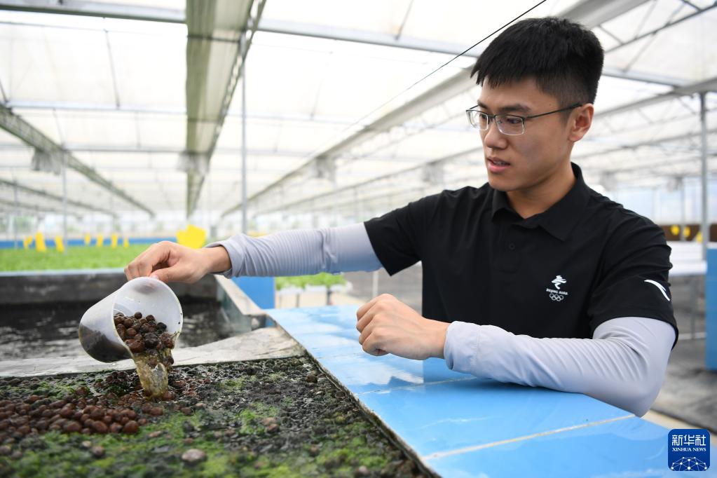 在廣東江門開平市國家現代農業示范區內,羅偉特在魚菜共生生產基地查看水體過濾情況(9月2日攝)。新華社記者 鄧華 攝