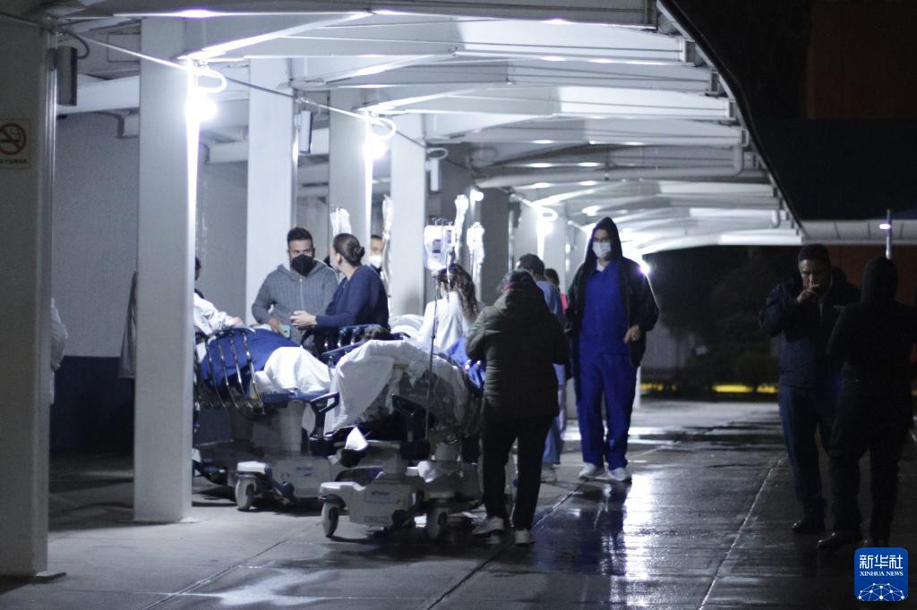 9月7日,在墨西哥首都墨西哥城,地震發生后一家醫院的工作人員將病人轉移到室外。