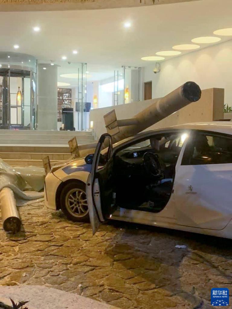 9月7日,在墨西哥格雷羅州阿卡普爾科,一部車輛被地震中倒塌的建筑物砸損。