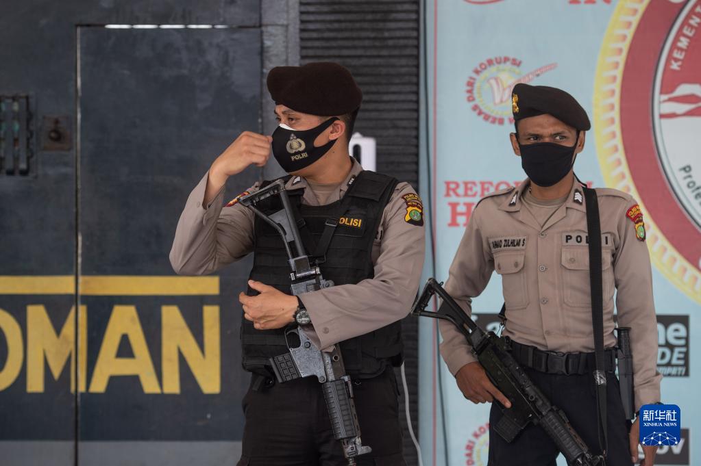 9月8日,警察在印度尼西亞唐格朗一監獄門前警戒。