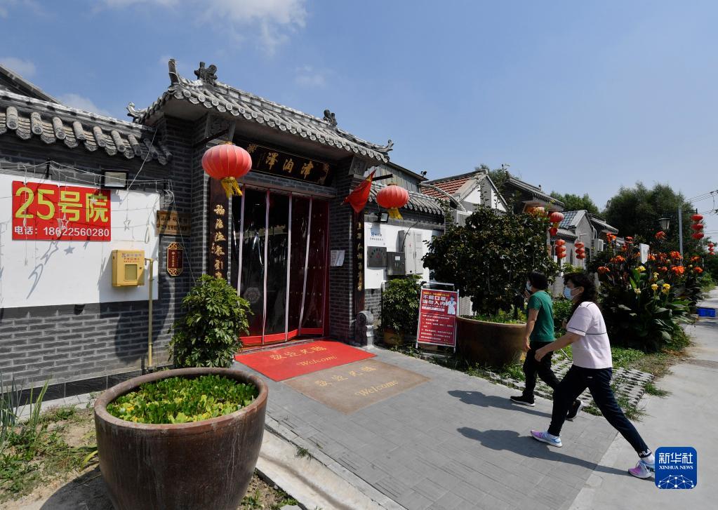 游客走進天津市寶坻區黃莊鎮小辛碼頭村的一家農家院(9月2日攝)。新華社記者 孫凡越 攝