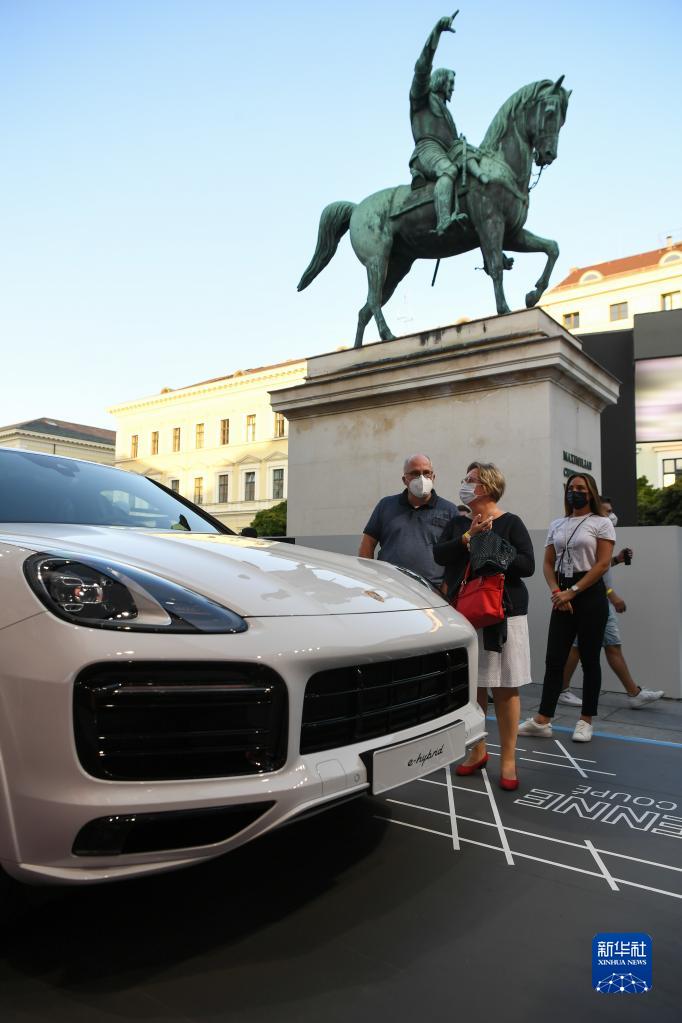 9月8日,人們在德國慕尼黑國際車展保時捷汽車戶外展區參觀。