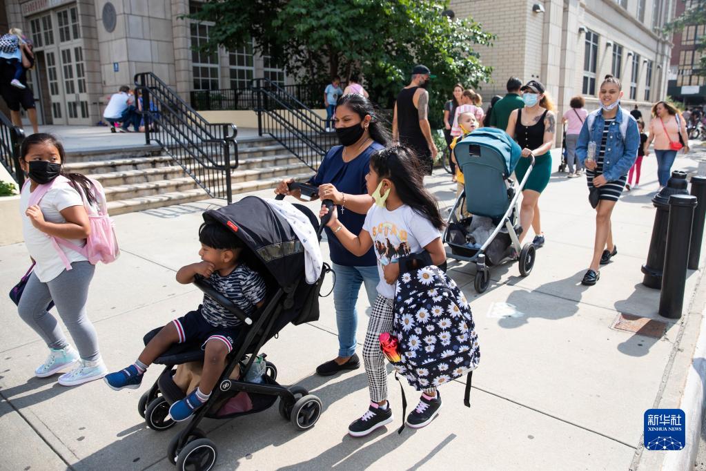 9月13日,家長在美國紐約一所公立學校外接學生放學。當日,紐約市公立中小學新學年開學,并全面恢復在校教學。