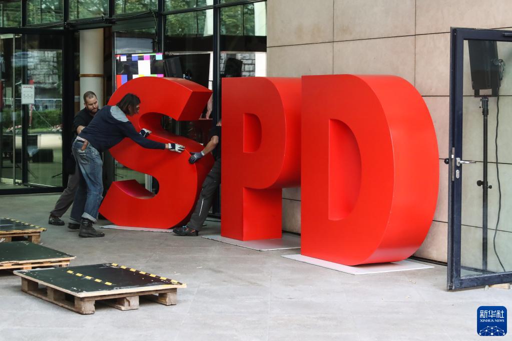 9月25日,工作人員在德國首都柏林的德國社會民主黨(社民黨)總部進行準備工作。