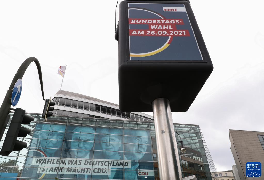 這是9月25日在德國首都柏林的德國基督教民主聯盟(基民盟)總部前拍攝的德國聯邦議院選舉宣傳廣告。