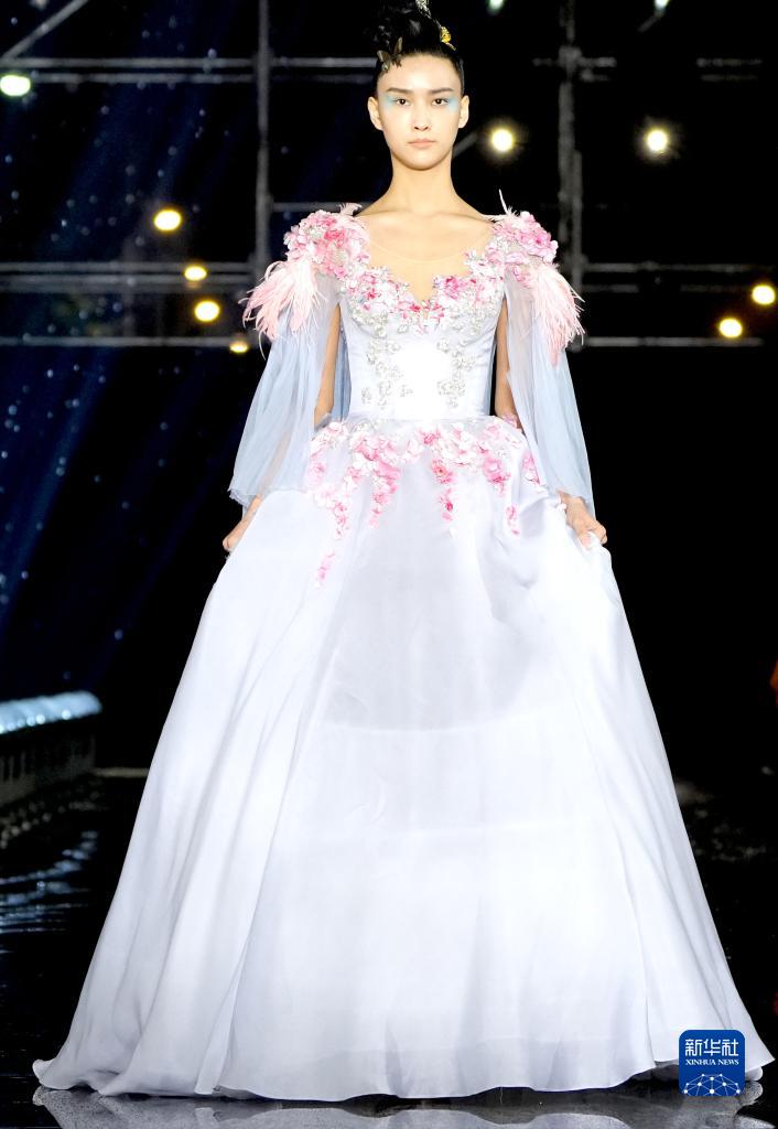 9月26日,模特在北京時裝周閉幕大秀上展示勞倫斯·許設計的時裝。