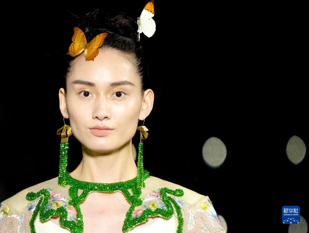 9月26日,模特在北京時裝周閉幕大秀上展示勞倫斯·許設計的時裝。