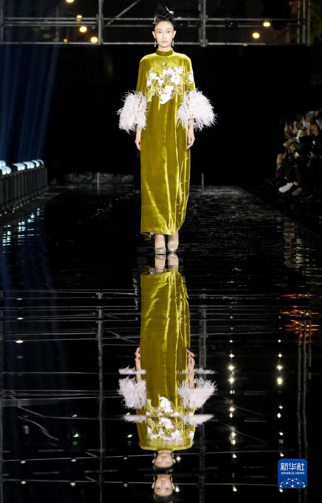 9月26日,模特在北京時裝周閉幕大秀上展示勞倫斯·許設計的時裝。