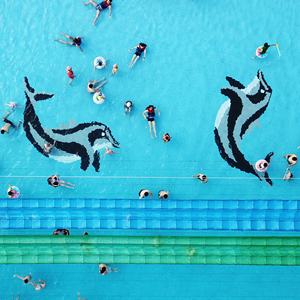 10月2日,游客在長沙世界之窗水上樂園游玩(無人機照片)。