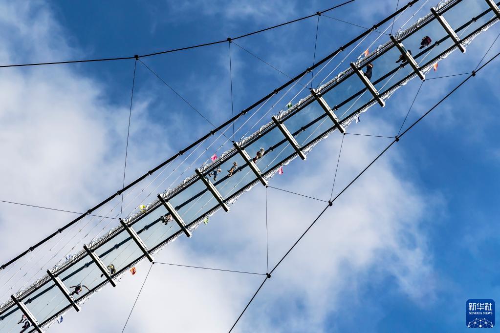 10月2日,游客在貴陽市開陽縣南江大峽谷景區體驗空中天梯。