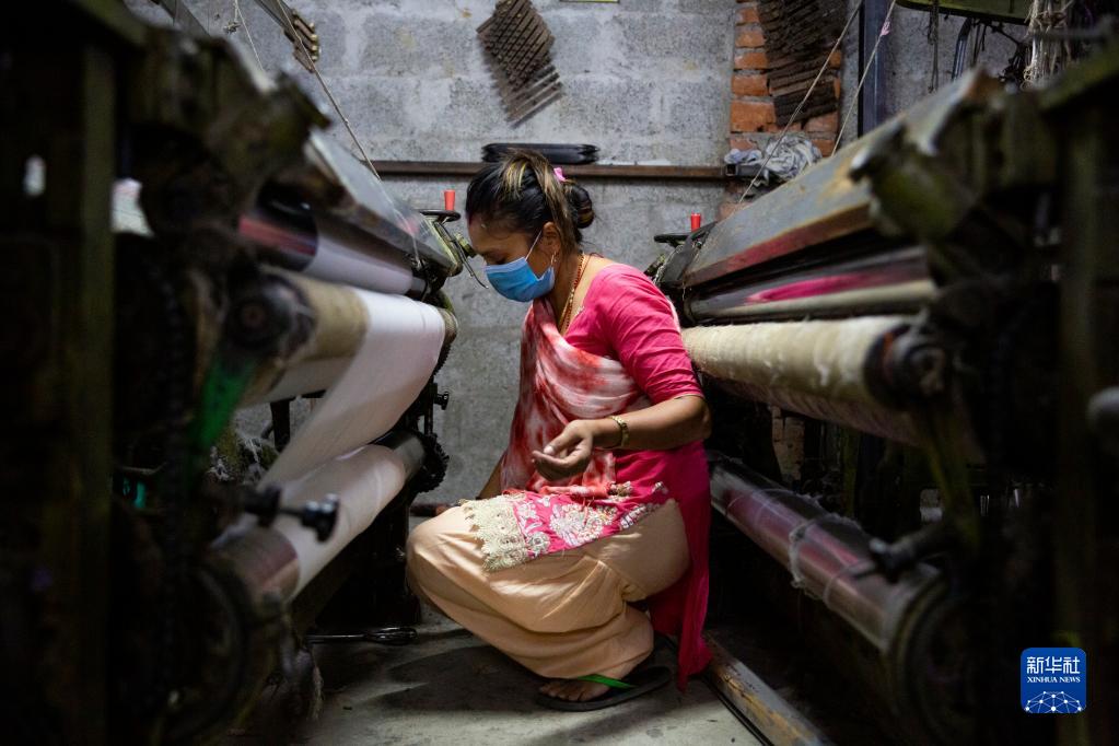 10月10日,一名工人在尼泊爾加德滿都的一處披肩工廠工作。