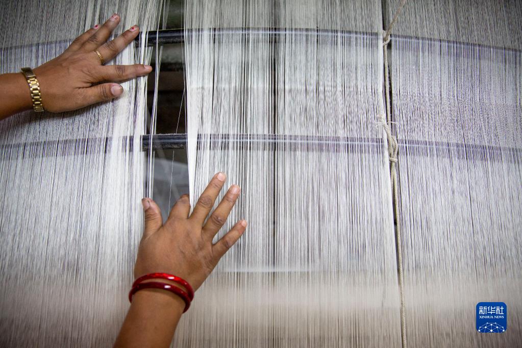 10月10日,一名工人在尼泊爾加德滿都的一處披肩工廠工作。