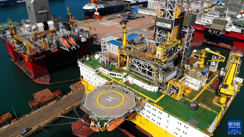 10月18日拍攝的“藍鯨1號”平臺(無人機照片)。