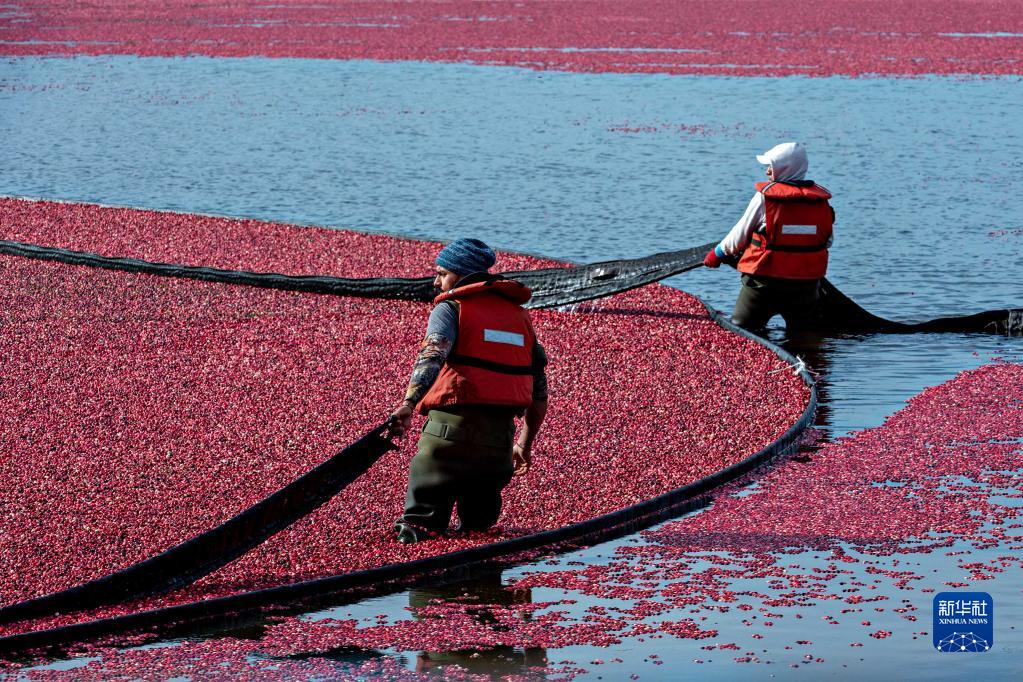 10月19日,農民在加拿大里士滿收獲蔓越莓。