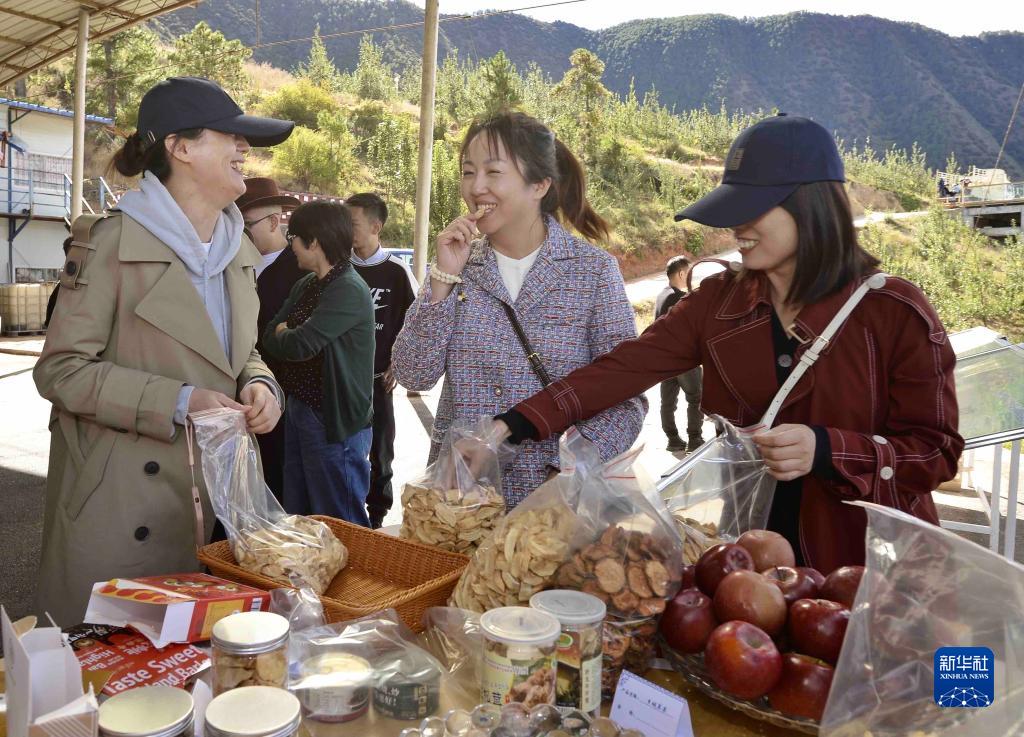 10月20日,在四川甘孜鄉城縣青德鎮萬畝果園,來自浙江的客商在品嘗蘋果干。
