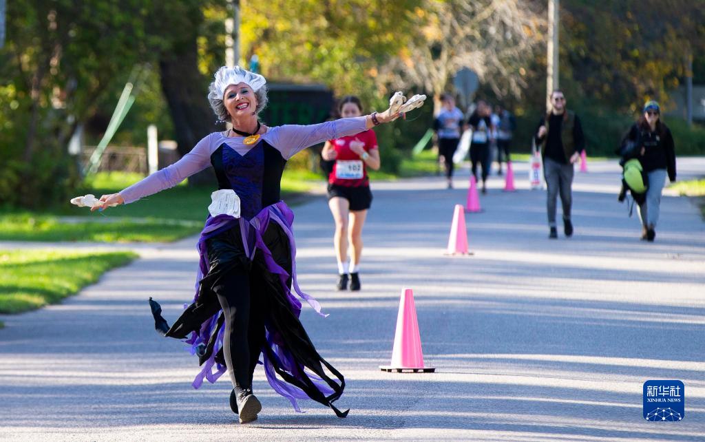 10月24日,一名穿著動漫服裝的女子在加拿大多倫多參加“變裝”5公里長跑。