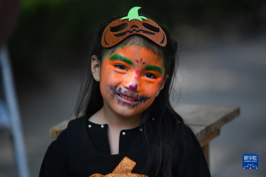 10月31日,在墨西哥首都墨西哥城,一名兒童參加亡靈節游行。