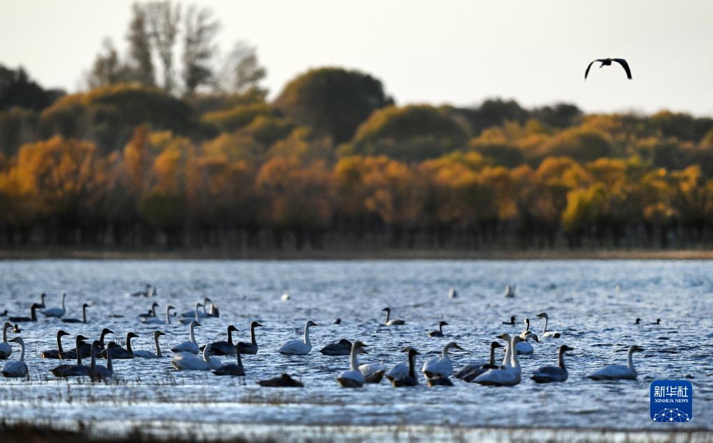近日,陜西省榆林市榆陽區河口水庫濕地迎來大批白天鵝、赤麻鴨等鳥類。近年來,位于毛烏素沙地南緣的榆陽區采取退牧還濕、禁牧減畜等有效措施,加強生態環境保護。河口水庫濕地擁有大量淺灘、蘆葦,地勢平緩,水域寬廣,野生魚蝦資源豐富,已經成為越冬候鳥途中覓食、停歇的理想之地。