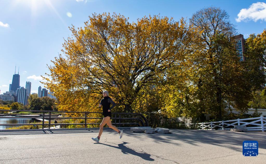 11月2日,一名女子在美國芝加哥林肯公園動物園跑步。