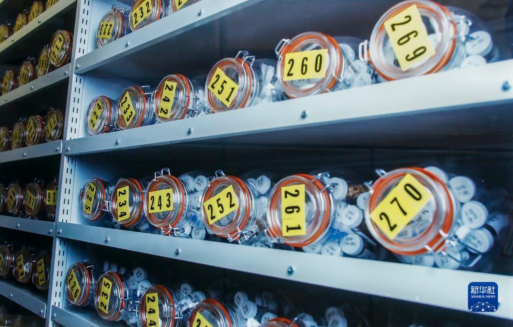 這張10月18日翻拍的照片顯示的是,在英國南部韋克赫斯特基尤千年種子庫內,玻璃瓶中的種子保存在零下20攝氏度的地下室中。