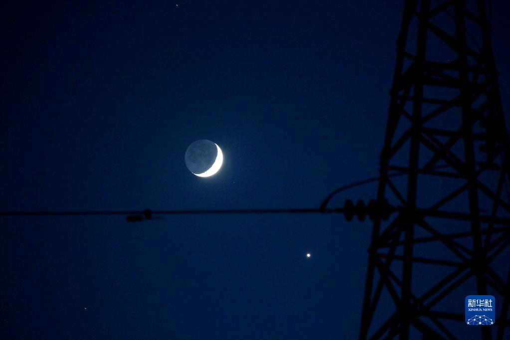 11月8日傍晚在江西省九江市都昌縣拍攝的金星合月景觀,金星和月球在天空相互呼應,格外醒目。