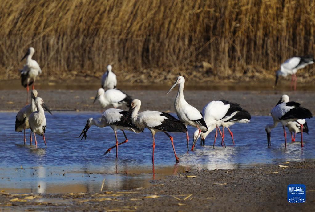 近日,大批南遷的東方白鸛飛抵河北省唐山市曹妃甸濕地休息、覓食。據介紹,該地2020年以來不斷加強濕地保護力度,曹妃甸濕地逐漸成為國家一級保護動物東方白鸛的重要棲息地。