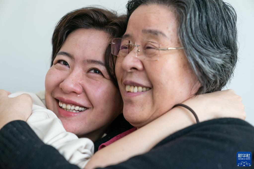 11月24日,女兒吳姝(左)在北京的住所內抱著剛剛出院的媽媽,臉上掛著幸福的淚水。