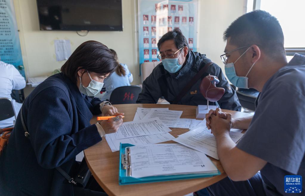 11月12日,在北京大學腫瘤醫院肝膽胰外一科病房,沈建群的女兒吳姝(前左)簽署手術同意書等材料。
