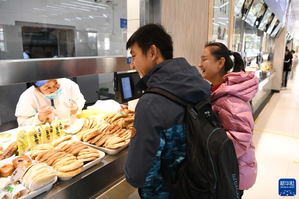 12月2日,在安慶師范大學,唐聞澤和張晨在買早餐。