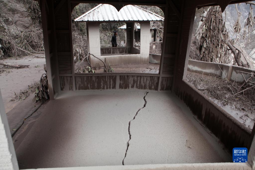 這是12月5日在印度尼西亞爪哇島東部盧馬姜拍攝的被火山噴發物覆蓋的建筑。