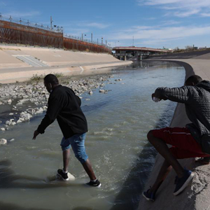 12月7日在墨西哥華雷斯城拍攝的照片顯示,移民試圖通過美墨邊境的布拉沃河進入美國。