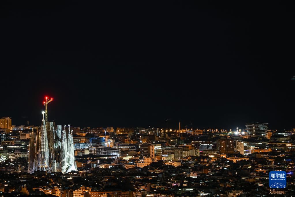 西班牙巴塞羅那地標建筑圣家族大教堂(又稱圣家堂)上的塔頂之星于11月29日安裝,12月8日點亮,標志著教堂建設“封頂”。圣家堂由西班牙著名建筑師高迪設計,從1882年開始修建至今,預計將于2030年竣工。