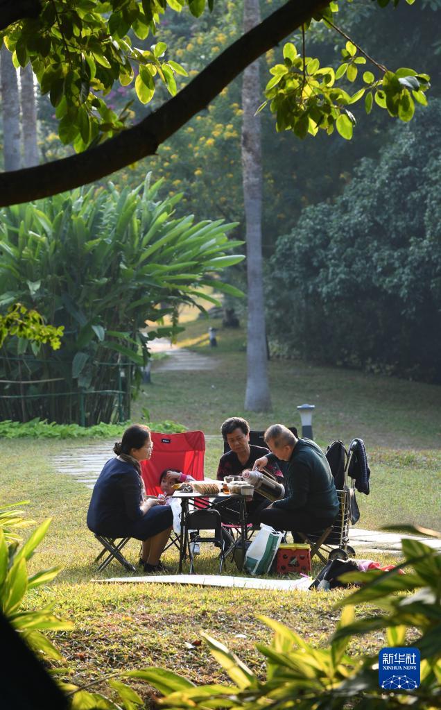 12月11日,在廣西南寧市南湖邊,市民在休閑娛樂。