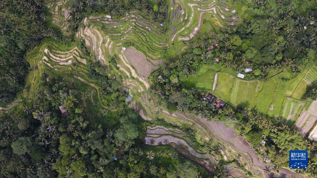 這是12月20日在印度尼西亞巴厘島拍攝的德格拉朗梯田(無人機拍攝)。