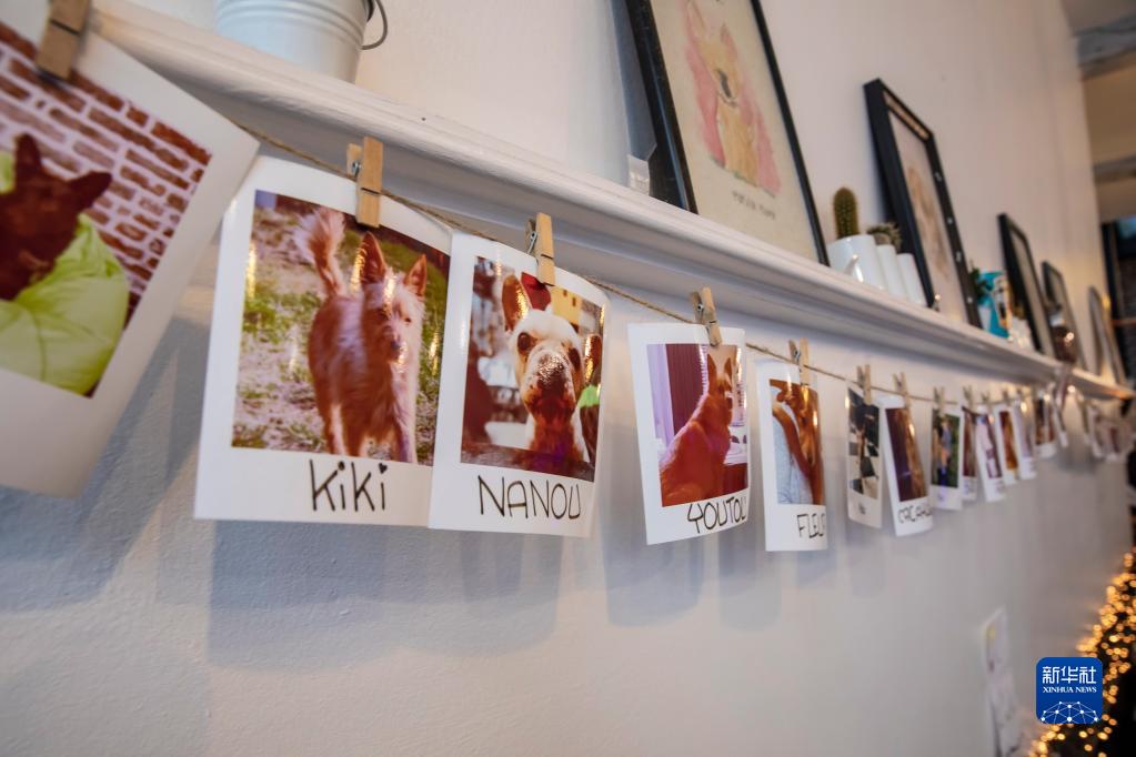 12月22日,在法國北部城市里爾名為Waf Cafe的咖啡館,墻上掛著后來被收養的狗狗照片。