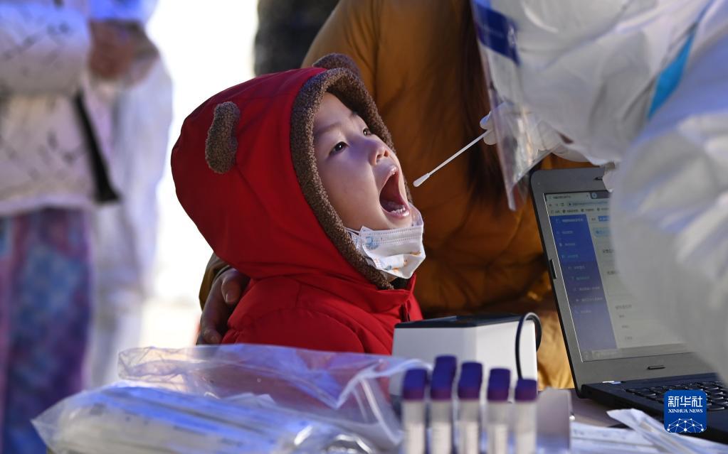 12月25日,一名小朋友在西安市新城區皇城西路檢測點做核酸。