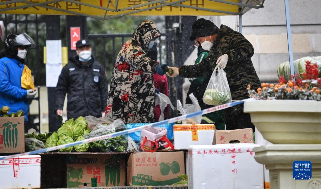 當日,西安市迎來雨雪天氣,全市小區(村)、單位實行封閉化管理,隨處可見堅守在各小區出入口的工作人員。雖然疫情讓這座城市按下暫停鍵,但是人們的生活仍在繼續:核酸檢測按時按規有序進行,一線工作者盡心盡力為民服務,所有市民按規居家抗疫,糧、油、肉、菜、蛋、奶等11類生活必需品市場供應充足,公共區域環境消殺頻次增加,整座城市安靜有序。