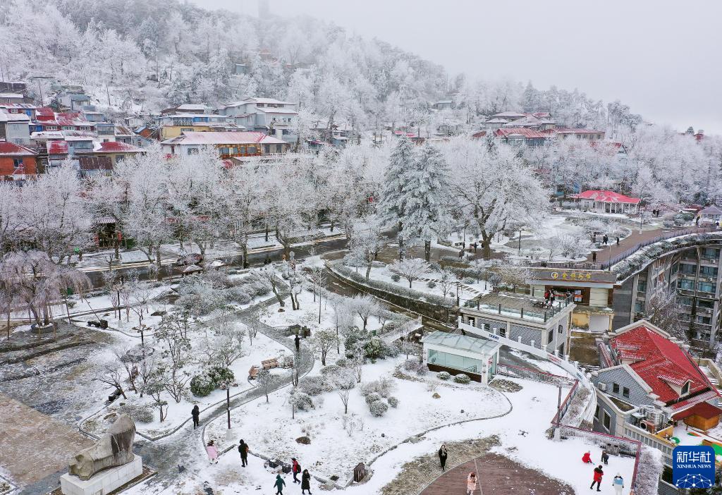 近日,江西廬山迎來降雪。皚皚白雪將廬山裝扮得銀裝素裹,宛如童話世界。
