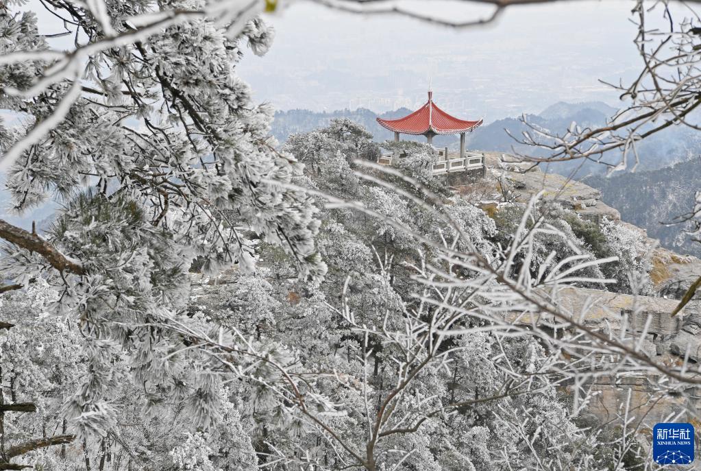 近日,江西廬山迎來降雪。皚皚白雪將廬山裝扮得銀裝素裹,宛如童話世界。