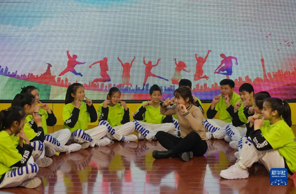 在江西省宜春市特殊教育學校,樊海艷和聽障學生們一起用手語交流、排練舞蹈(12月28日攝)。