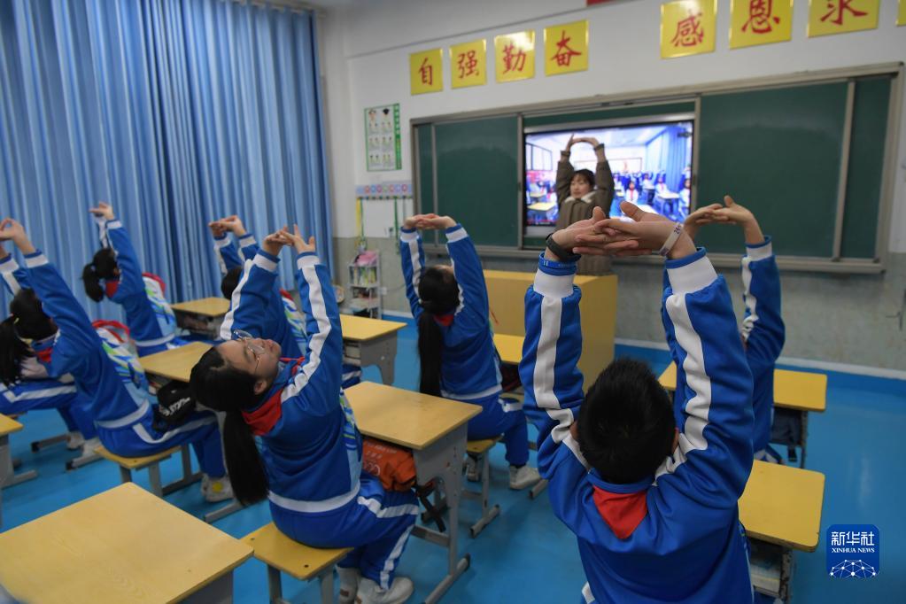 在江西省宜春市特殊教育學校聽障班教室,樊海艷和學生們在課間休息時練習舞蹈動作,這是樊海艷自創的課間操(12月28日攝)。