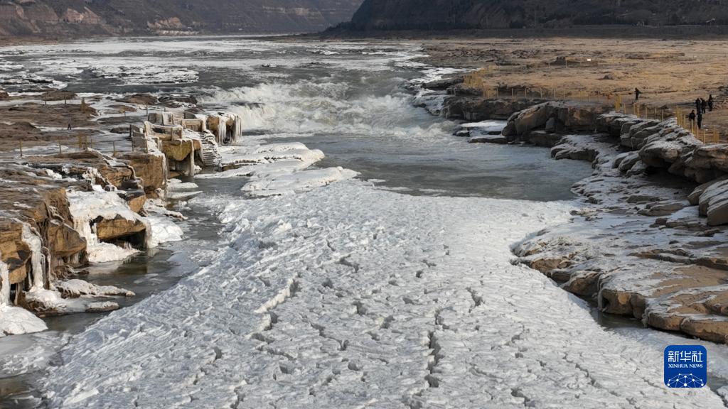 近日,隨著氣溫逐漸降低,黃河晉陜峽谷流凌密度持續增大,大量流凌堆積,壺口段流凌封河的速度明顯加快,壺口瀑布往日30余米高的落差降低至2米左右。