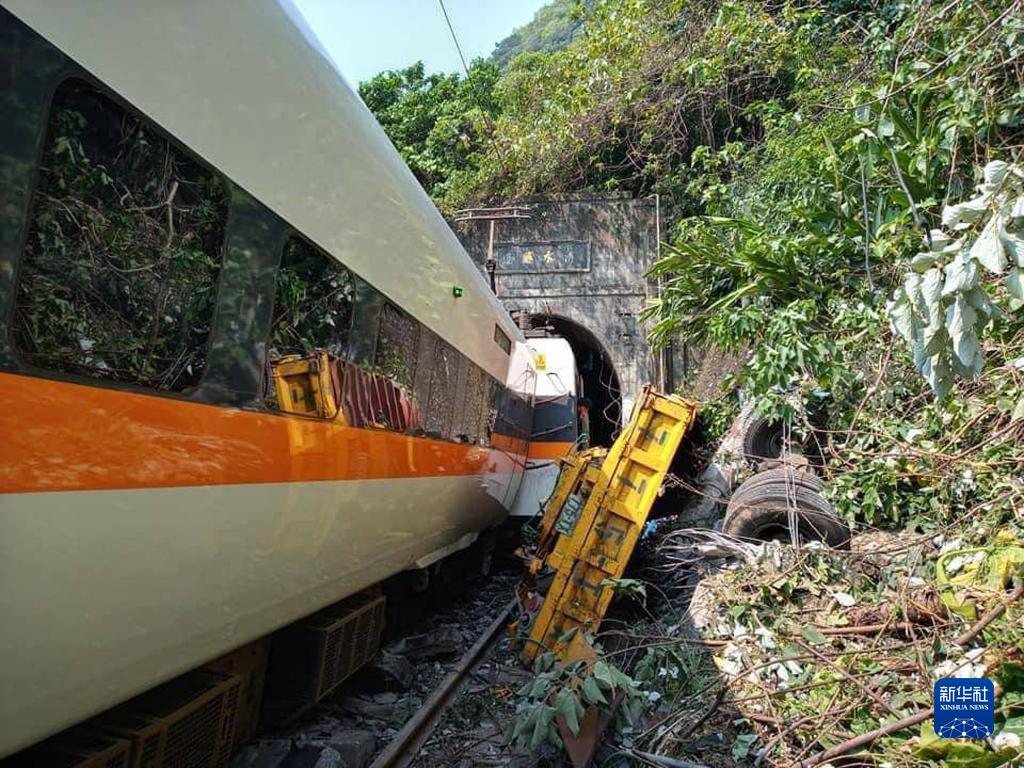 2021年4月2日上午,臺灣鐵路408次太魯閣號列車在駛出花蓮縣和仁隧道231米后、距清水隧道前39米處時,與滑落至軌道上的貨車相撞,造成8節車廂全部出軌,49人罹難,逾200人受傷。這是事故現場。