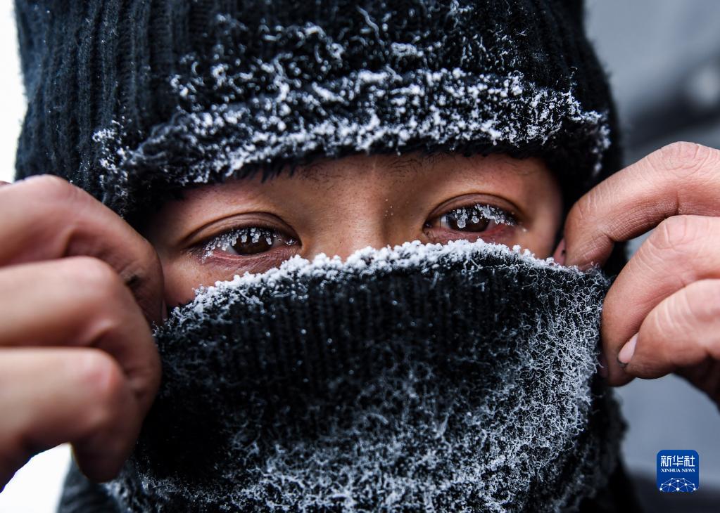 2021年1月8日,在中鐵呼和浩特局集團有限公司錫林浩特站,一名調車員在整理防寒面罩。當日,內蒙古錫林郭勒盟錫林浩特市氣溫低至零下30攝氏度。