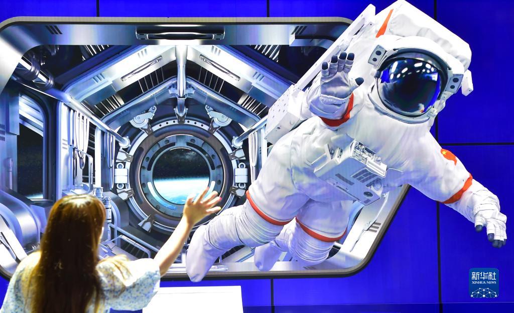 2021年8月22日,媒體記者在于重慶舉行的2021中國國際智能產業博覽會上參觀裸眼3D展示。